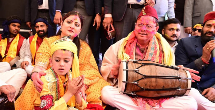 02-Mar-2026 | जीवनशैली, उत्तराखंड, Dehradun, Rishikesh, Haridwar, Roorkee, Almora, Nanital, Tehri Garhwal, Pauri Gharwal, Kumaon, Uttarkashi, Chamoli | By Sristiमुख्यमंत्री आवास में सोमवार को होली के रंगों की बहार नजर आई।प्रदेश भर से आए लोक कलाकारों और होल्यारों ने अपनी अपनी धुनों से माहौल को उत्सवमय कर दिया। इस दौरान एक तरफ, हारूल नृत्य करते जौनसारी कलाकार थे तो दूसरी तरफ, अपनी ही धुन में मगन होली गीत गाते कुमांउनी होल्यारों की टीम। इन सबके बीच पौड़ी जिले के राठ क्षेत्र से आई सांस्कृतिक टोली ने भी अपना रंग जमाया। इस दौरान आम और खास ने मुख्यमंत्री पुष्कर सिंह धामी को रंग लगाकर शुभकामनाएं प्रेषित की।