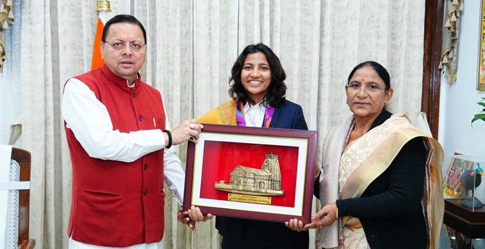 महिला विश्व कप विजेता क्रिकेटर स्नेह राणा ने की मुख्यमंत्री श्री पुष्कर सिंह धामी से शिष्टाचार भेंट